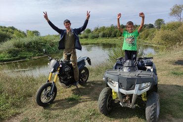 Представь: суббота, он снова залипает в телефоне — и вдруг ты говоришь: «Поехали, у меня сюрприз». Через полчаса — свежий воздух, река Иж мерцает в просветах между деревьями, вы вместе на двухместной технике выходите на лёгкую тропу, и он смеётся так громко, что шлем едва удерживает восторг. Это катание на квадроциклах по лёгкой лесной тропе — без риска и без спешки, с удовольствиями, за которыми вы приехали. Трасса Light Classic — 8 км чистой природы за 40 минут: поля, лесные просеки, заброшенные мосты для коротких остановок и снимков — формат индивидуальный, без сборных групп. Здесь экскурсии на квадроциклах проходят в индивидуальном формате, а ритм подстраивают под вас. Инструктор рядом, колонна — максимум из трёх квадроциклов, темп задаёте вы: ты рулишь, он прижимается к плечам и кричит: «Ещё!». Для семейных выездов доступна аренда квадриков в сопровождении инструктора — водительские права не нужны: перед стартом даём понятное обучение, и уже через пять минут ты уверенно управляешь техникой. Короткий инструктаж — и увереннее становишься с каждым метром. Экипировку выдадут на базе: шлем, очки, перчатки, наколенники — забота о безопасности и комфорте уже включена. Хочешь — он может аккуратно попробовать силы на детской трассе под присмотром инструктора, а ты будешь неподалёку и снимешь его первые круги. Фото? Легко: попроси инструктора — он поймает тот самый кадр, где вы летите через лужу, а на лице младшего — искра, которую он завтра понесёт в школу и в чаты. На снимках останутся изгибы реки Иж и метка Ижевск — память о дне, когда вы устроили маленькое приключение. Это не очередной выход в ТЦ; это история, которую он будет пересказывать как свой первый настоящий маленький подвиг.